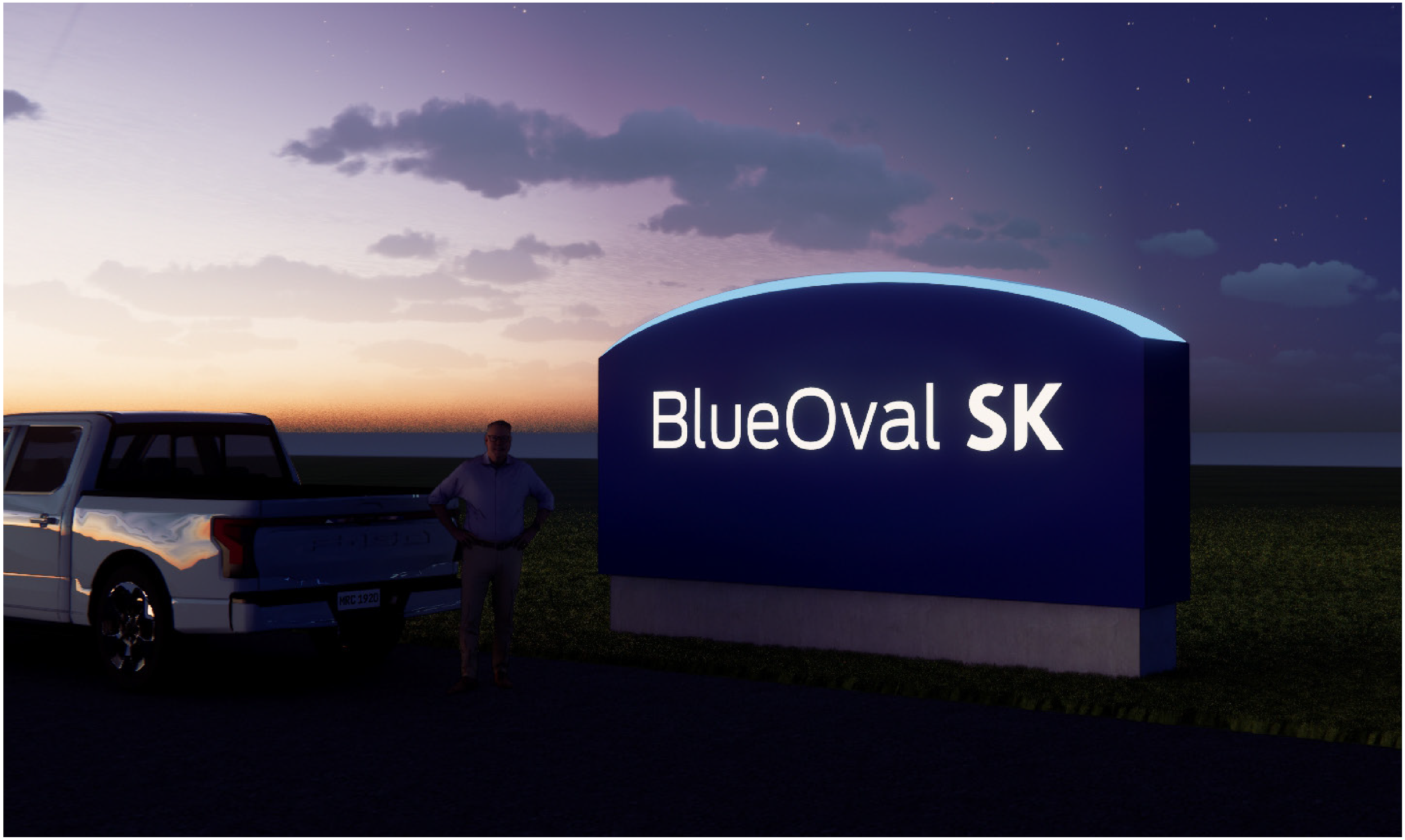 BlueOval SK monument sign (night) • Rendering courtesy of Ghafari