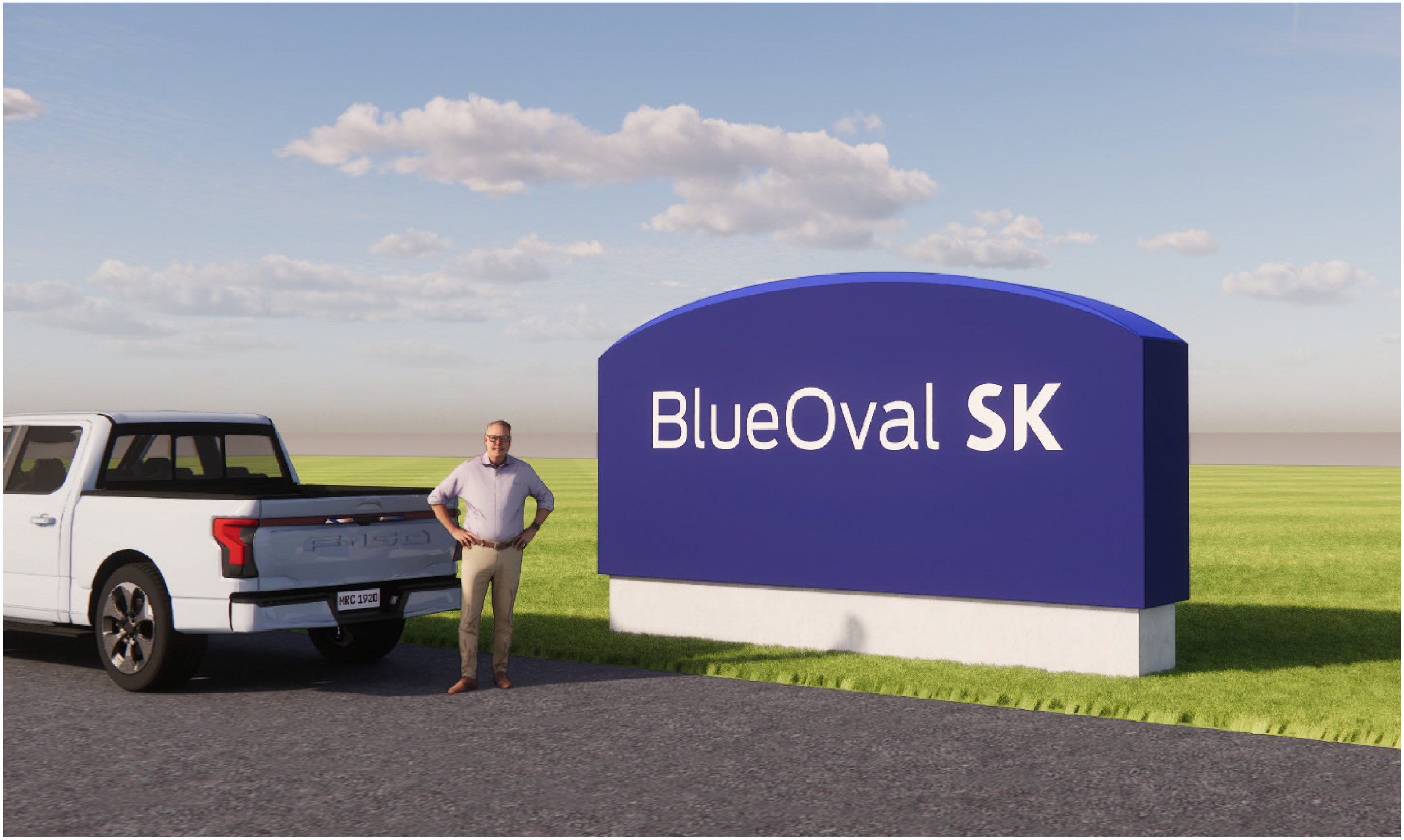 BlueOval SK monument sign • Rendering courtesy of Ghafari